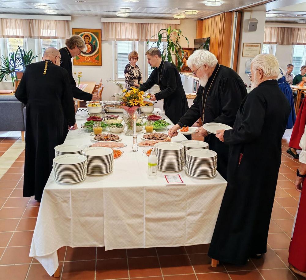 Isä Esipaimen siunasi Juhlamurginan, Viktor Jetsun karjalankielisen rukouksen jälkeen. Ja niin papisto ja piispat aloittivat murginan.