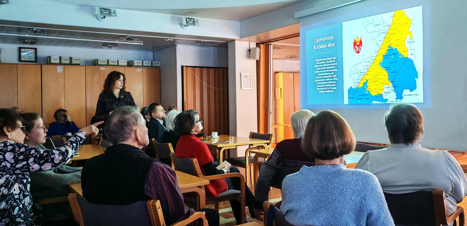 Ildutzit ma 23.2.2026; Outi Örn esitelmöi aiheesta "Luovutetun Karjalan hautausmaat". Outi on tekemässä aiheesta väitöskirjaa. Erityiskohteeksi hän on tutkimuksessaan ottanut Viipurin kaupungin ja pitäjistä; Salmi, Kirvu, Kurkijoki ja Vpl.Pyhäjärvi.